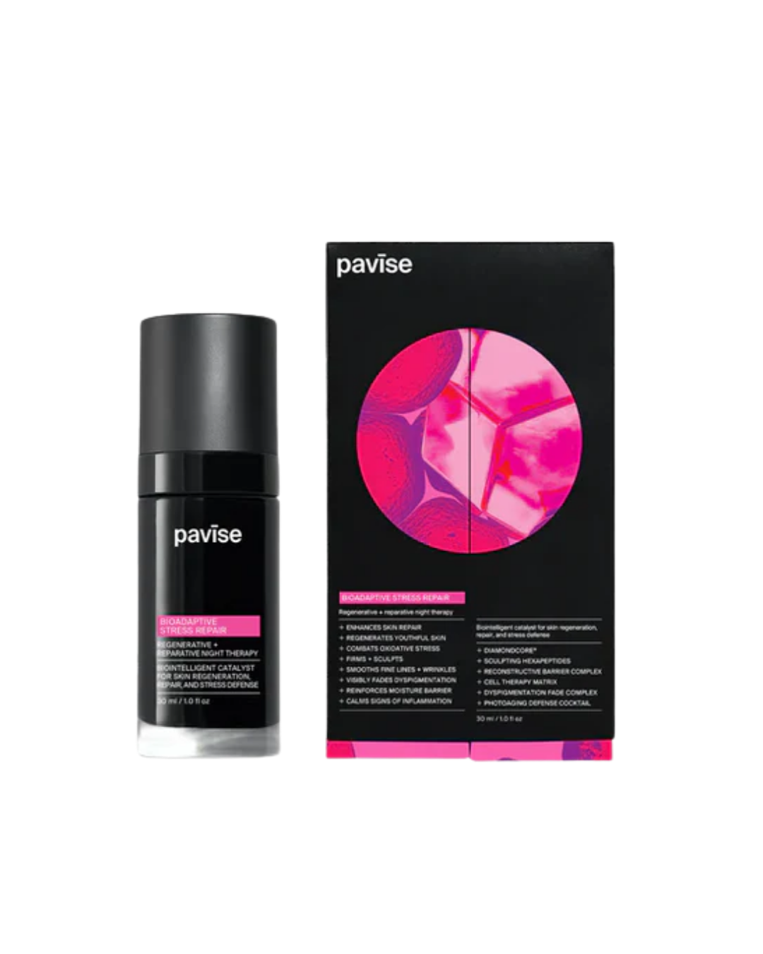 Pavise Bioadaptive Stress Repair is an advanced restorative treatment that helps the skin recover from daily stressors and aging triggers.